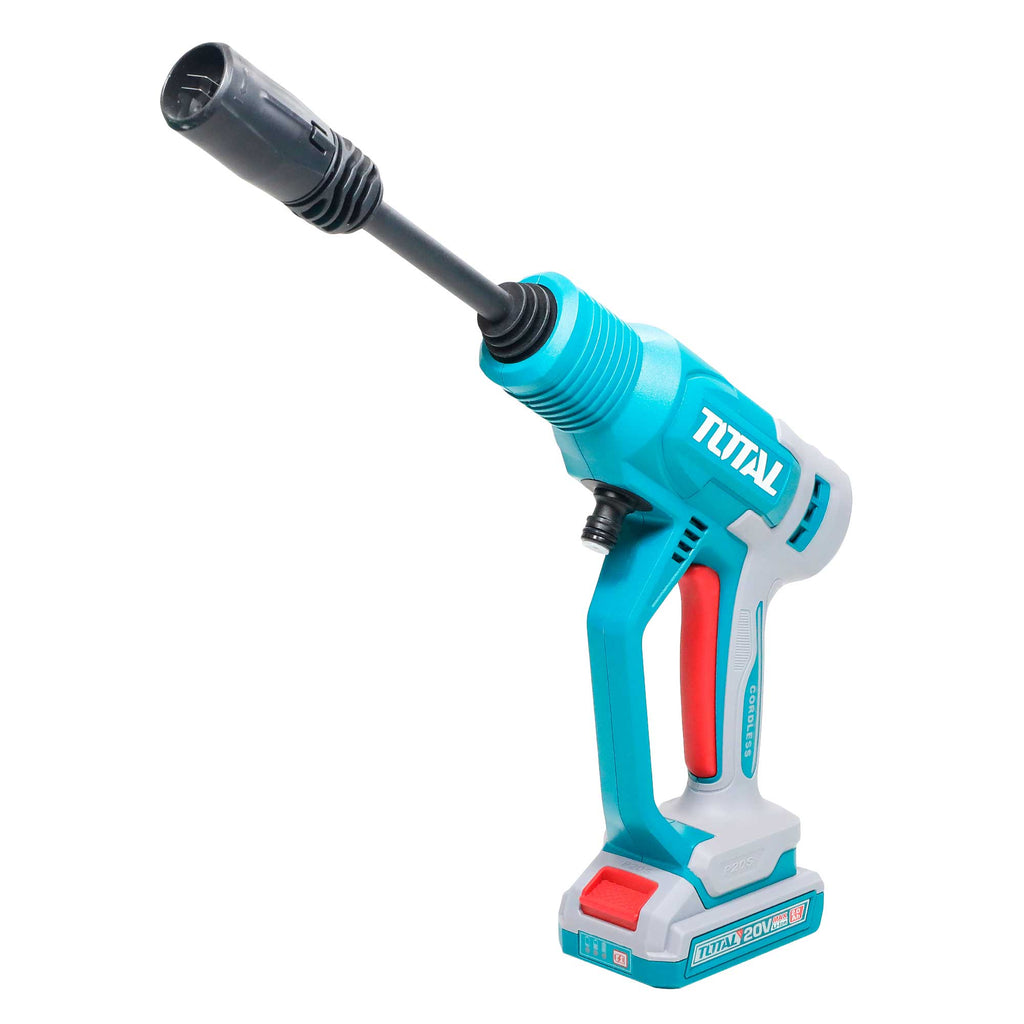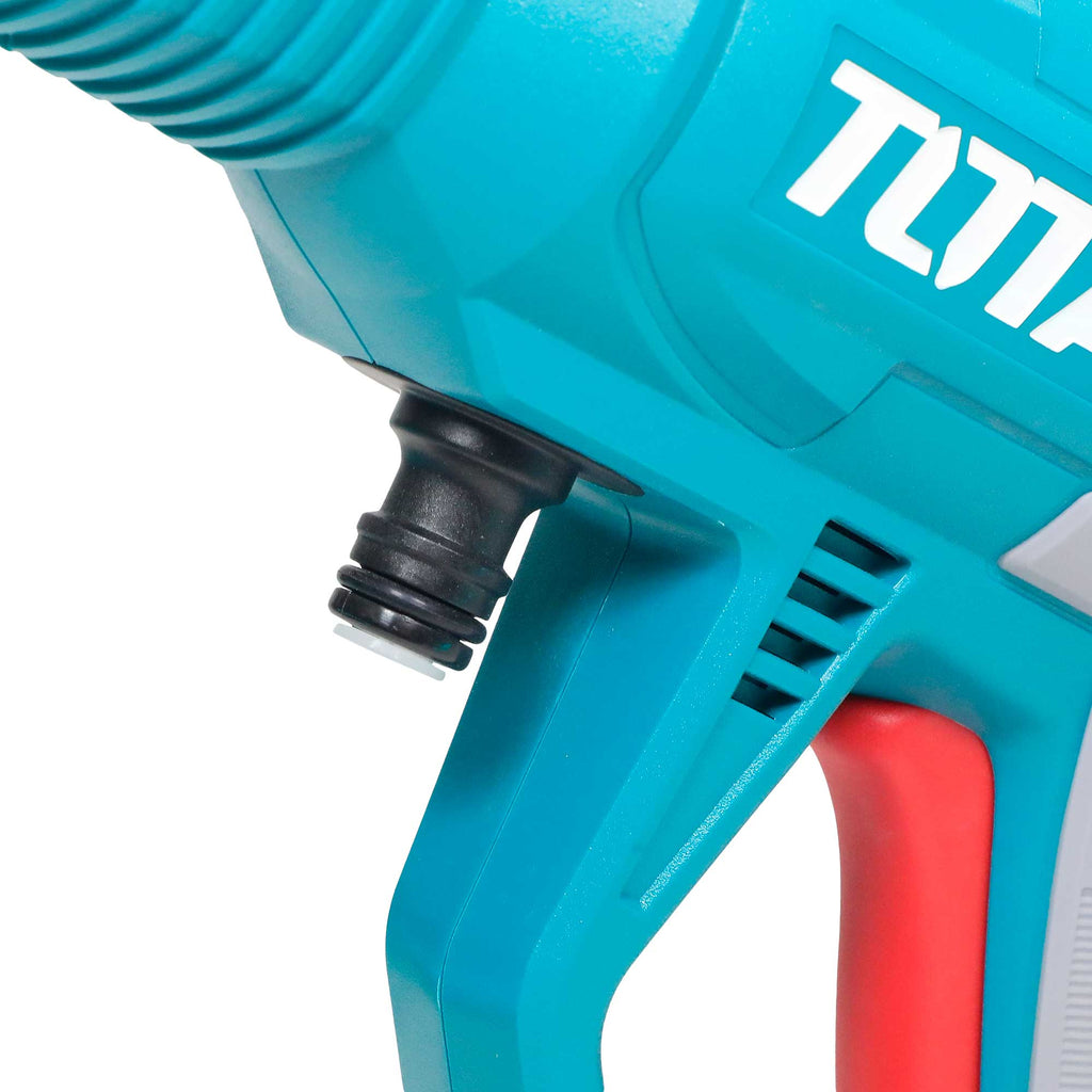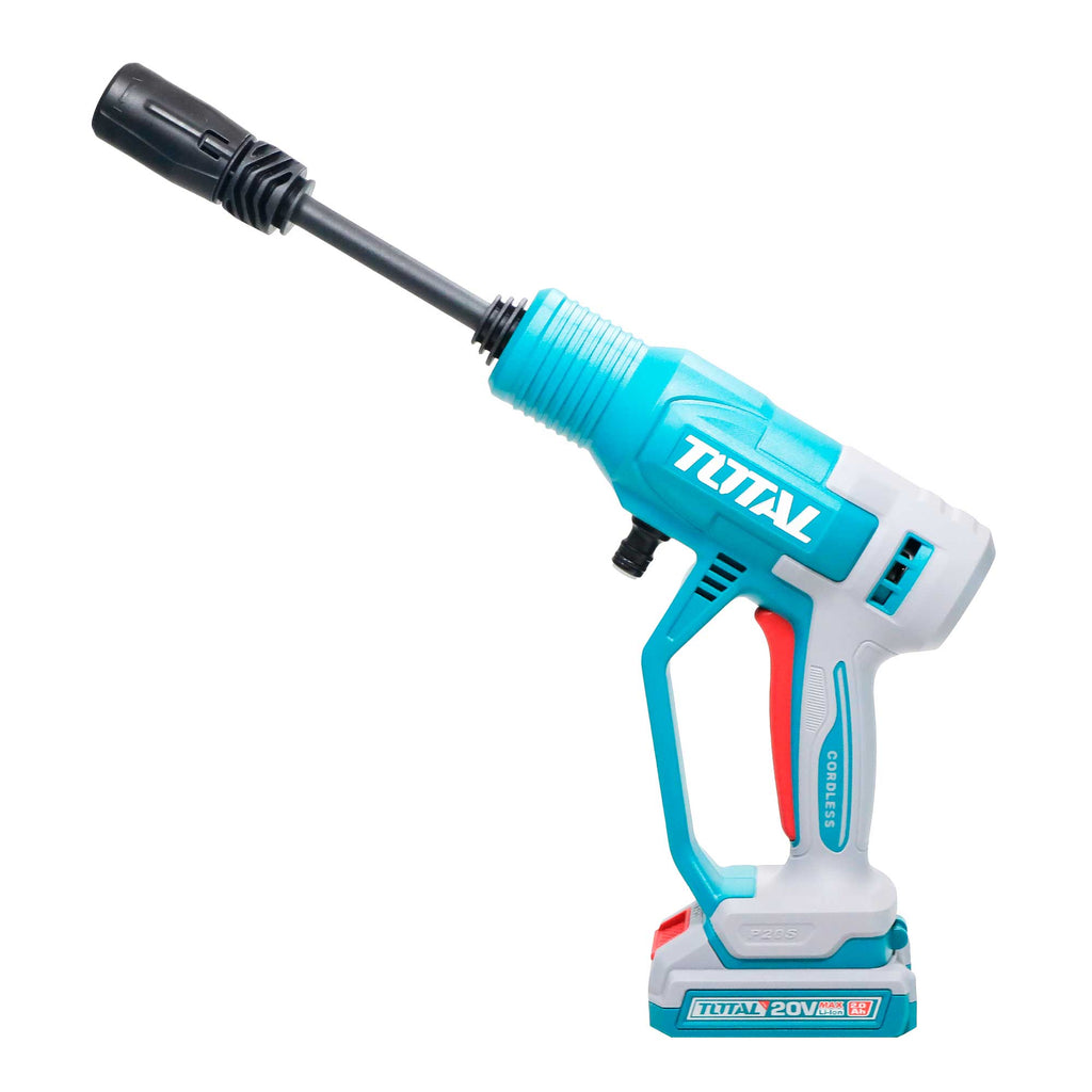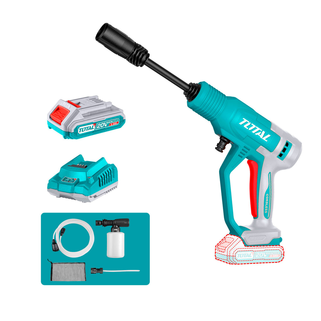Napetost: 20V Maks. tlak: 24,8 Bar Pretok: 2,8 L/min Samodejni sistem zaustavitve Vključuje: 1 komplet razpršilne pištole z 2 vzorci 1 kos 6m dovodne cevi za vodo s hitrim priključkom 1 kos 300ml proizvajalca pene 1 kos priključka za samosesanje 1 kos prenosne torbe 1 kos baterijskega paketa 2Ah (TFBLI2001) 1 kos polnilnika (TFCLI2001E) Napetost polnjenja: 220-240V~50/60Hz Pakirano v barvni škatli