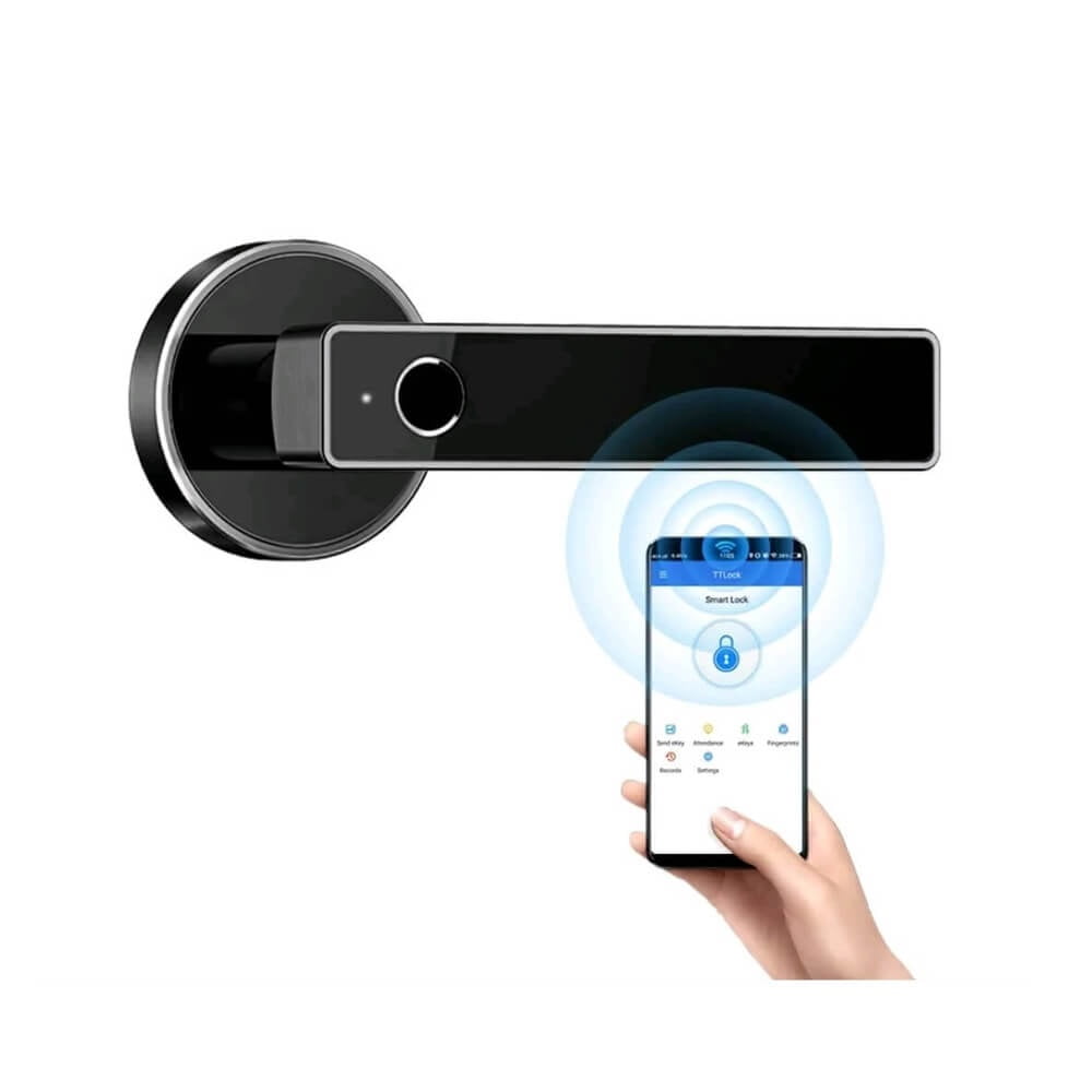 Načini odpiranja: Dostop do ključavnice je možen preko Bluetootha, prstnega odtisa, mehanskega ključa ali prehoda (*neobvezno), kar ponuja več možnosti za udobje.