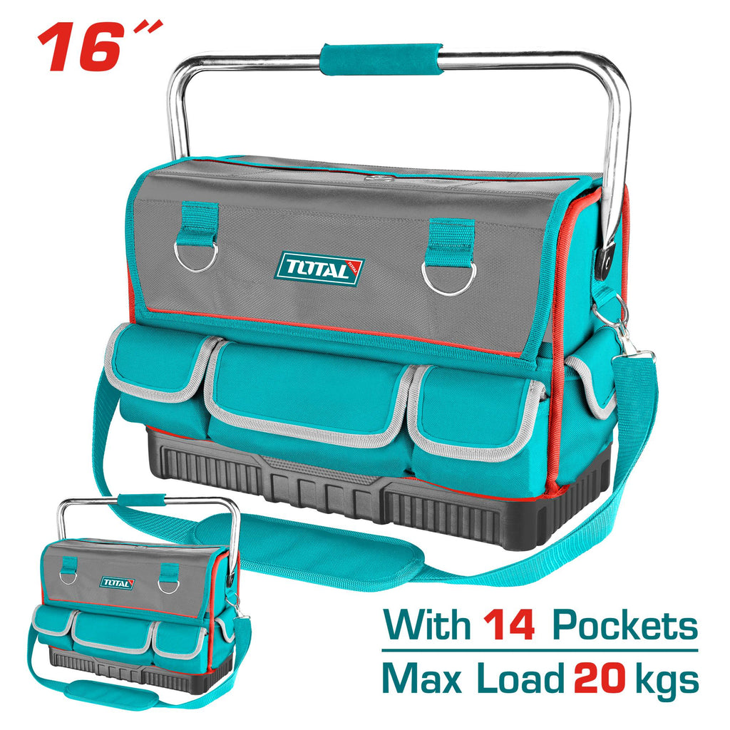 Torba za orodje 16″ je popolna izbira za vsakega domačega mojstra ali profesionalca. Z 14 žepi za orodje omogoča optimalno organizacijo vaših pripomočkov. Dvojno stransko odpiranje zagotavlja enostaven dostop do celotne delovne postaje. Izdelana je iz trpežnega materiala, vključno s 600D in 1680D poliestrom ter materialom proti vlagi, ki ščiti vaše orodje pred poškodbami. S kapaciteto do 20 kg je idealna za prenašanje različnih orodij. Mehko oblazinjen ročaj in močan jeklen ročaj ter ramenski trak zagotavljajo udobje in enostavno prenašanje. Ne nazadnje pa močna ojačana plastična podlaga zagotavlja trpežnost in stabilnost. Torba je pakirana z nalepko, kar zagotavlja, da je pripravljena za uporabo takoj, ko jo prejmete.
