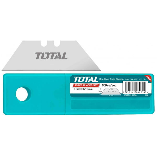 Nabor rezil TOTAL THT519001 vsebuje 10 rezil za gradbeni (pisarniški) nož.