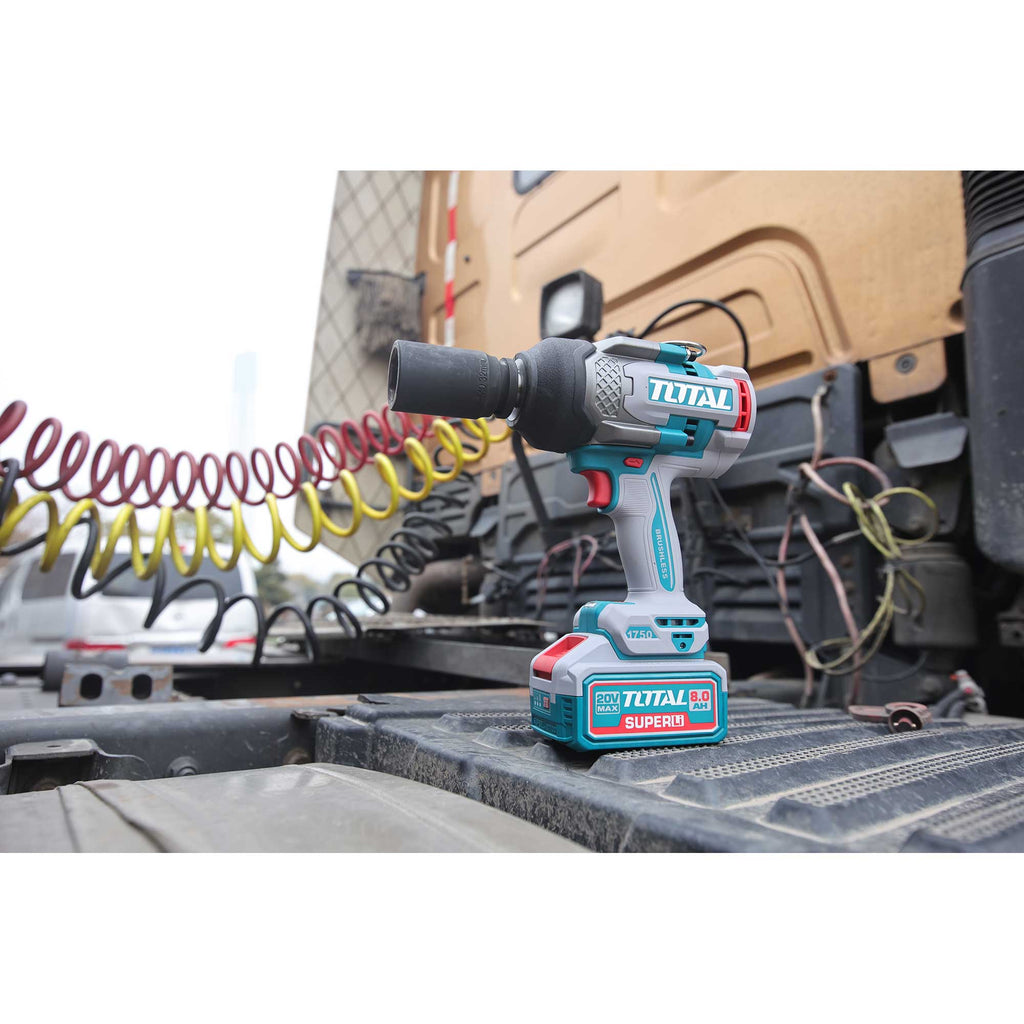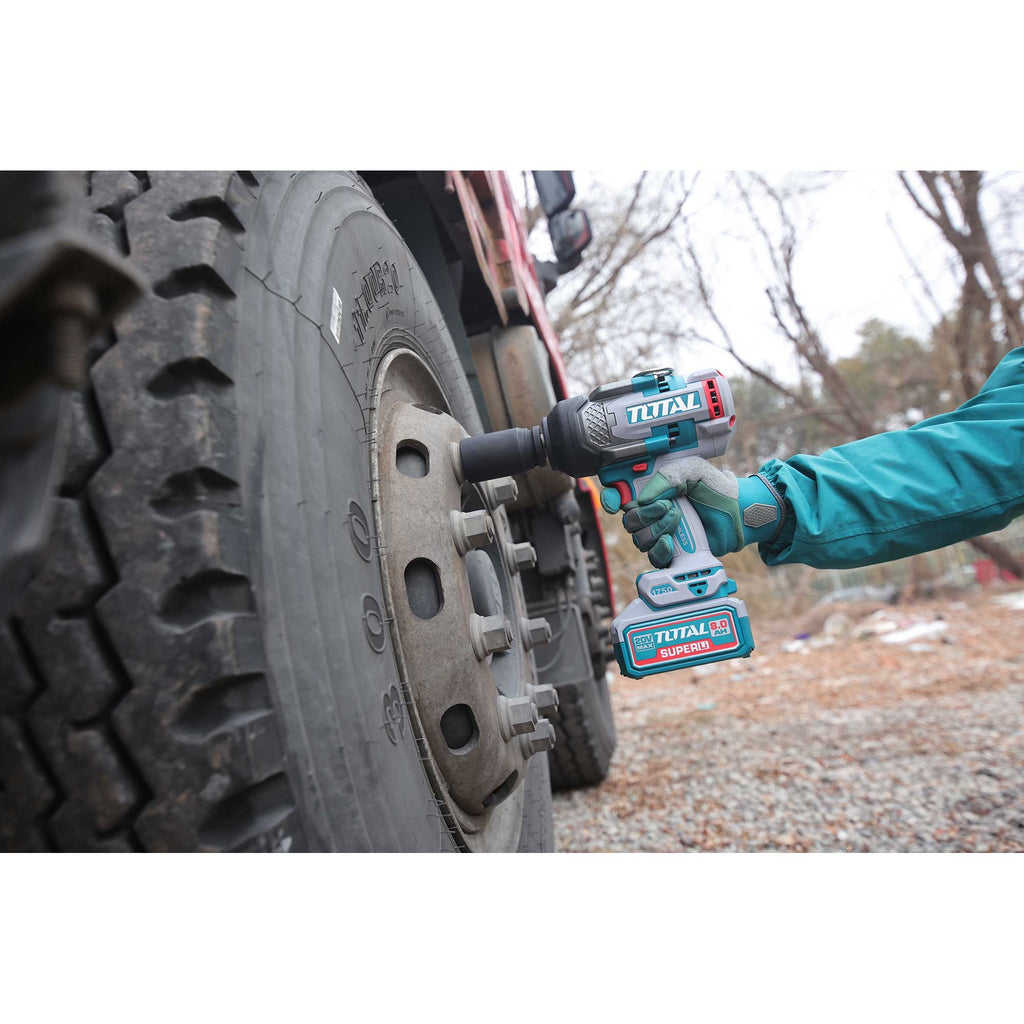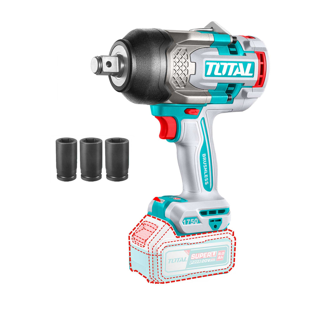 Brezkrtačni motor Napetost: 20V Kvadratni pogon: 3/4″ Hitrost brez obremenitve: 0-900/0-1200/0-1800 vrt/min Hitrost udarcev: 0-1800/0-2000/0-2200 udarcev/min Zatezni navor: 1750Nm Navor za odvijanje matic: 2100Nm Vgrajena delovna luč Vključuje: 3 kosi vtičnic (30, 32, 34 mm) Vgrajena delovna luč Baterija in polnilec se prodajata ločeno Pakirano v barvni škatli