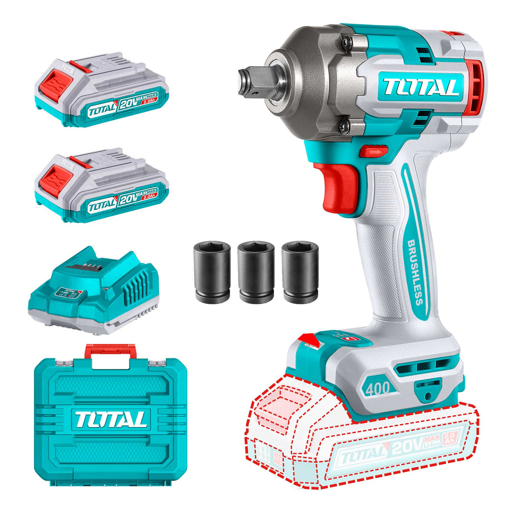 Brezkrtačni motor Kvadratni pogon: 1/2″ Hitrost brez obremenitve: 0-1600/0-1900/0-2300 vrt/min Hitrost udarcev: 0-2100/0-2500/0-2900 udarcev/min Zatezni navor: 400 Nm Navor za odvijanje matic: 550 Nm Vgrajena LED delovna lučka Vključuje: 2 kosa 2,0 Ah baterijski paket (TFBLI2001) 3 kosi vtičnic (17, 19, 21 mm) 1 kos 20V polnilec (TFCLI2001E) Napetost polnjenja: 220-240V~50/60Hz Pakirano v prenosnem kovčku