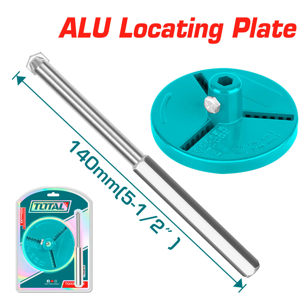 1 kos aluminijaste locirne plošče 1 kos vodilnega svedra Min. RPM 800 Max. RPM 1600 Primerno za karbidne luknjače Φ33,Φ43,Φ53,Φ63,Φ67,Φ73,Φ83 Pakirano v dvojni pretisni omot