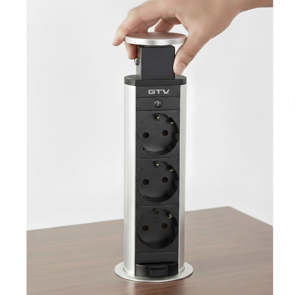 Vgradna izvlečna vtičnica je ena izmed najbolj priljubljenih rešitev na trgu. Primerna je za majhne in ozke prostore – pisalne mize, jedilne mize ali kuhinjske delovne pulte. Ko je vtičnica izvlečena, ponuja tri električne priključke in dva USB porta za polnjenje mobilnih naprav. Zaključena je z elegantnim pokrovom.