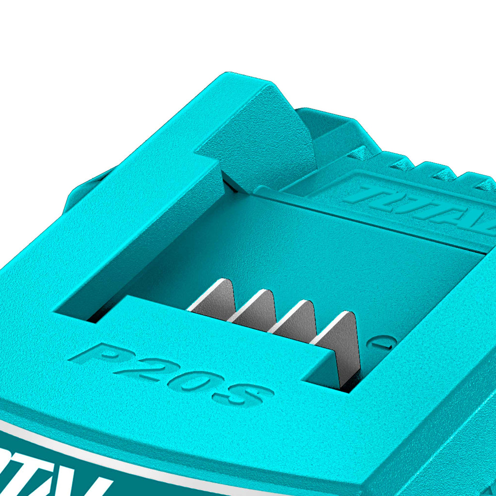 Napetost: 20V Z 2 kosoma litij-ionskega baterijskega paketa (TFBLI2002) Z 1 kosom polnilnika (TFCLI20411E) Litij-ionski baterijski paket (TFBLI2002): Litij-ionska baterija 4,0Ah LED indikator napolnjenosti baterije Ena baterija ustreza vsem P20S večnamenskim orodjem Polnilnik za litij-ionske baterije (TFCLI20411E): Vhodna napetost: 220-240V~50/60Hz Izhodna napetost: 21V Izhodni tok: 4A Pakirano v dvojni pretisni omot