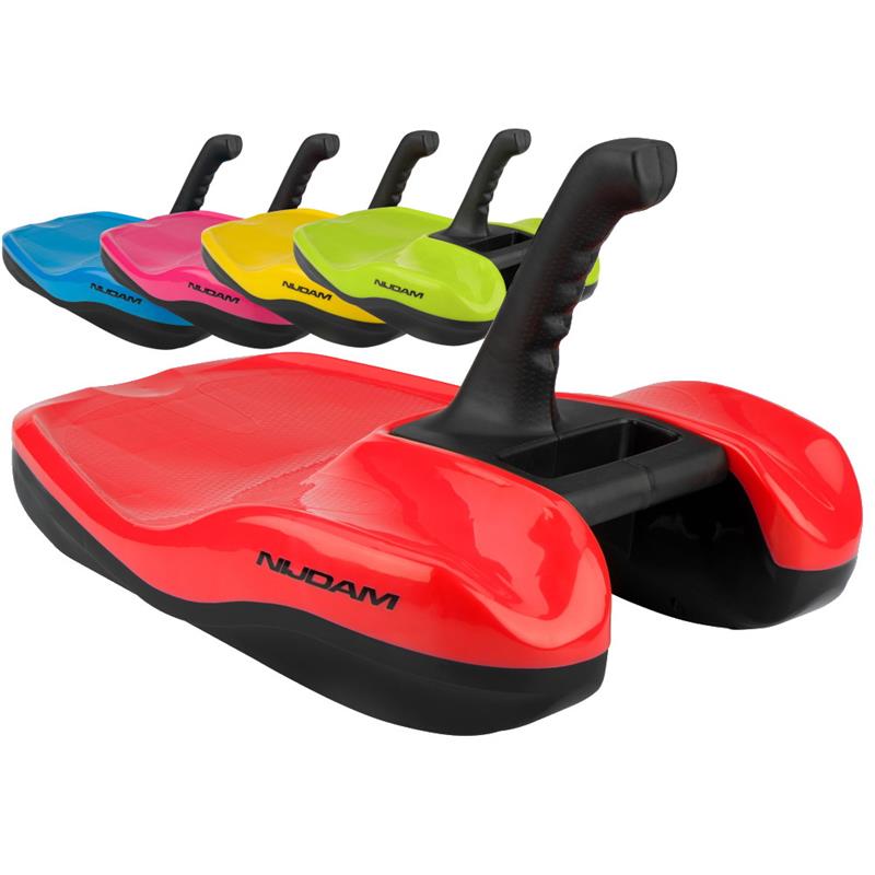 Plastične, patentirane sani s preklopnim ročajem za upravljanje in nosilcem za lažji transport. Sedež in ročaj sta prevlečena z nedrsečim materialom.